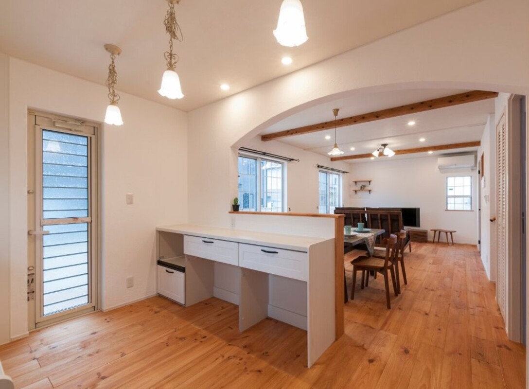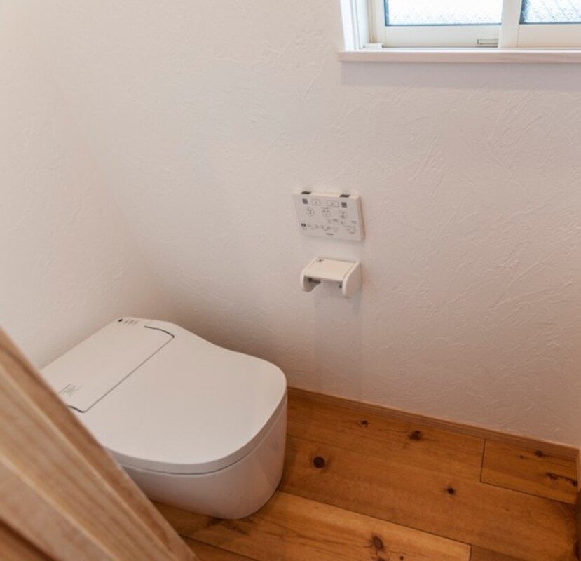 全てのフロア、そしてトイレの壁までも本格的な漆喰仕上げとしています。漆喰は、古くから日本の建築で使われてきた天然素材の壁材で、調湿・消臭・防カビといった優れた機能を持ち、常に空気をきれいに保ちます。トイレのような湿気の多い空間でも、漆喰の自然な調湿作用が働き、カビの発生を抑えて快適な環境を維持します。見た目にもやわらかく上質な質感で、どの部屋も清潔感とぬくもりに包まれた空間に仕上がります。