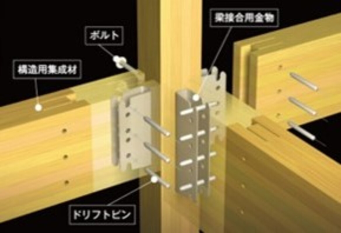 在来軸組の技術と現代技術が融合するハイブリット工法では、耐震の特殊金具を使用することで柱・梁の断面欠損を約70%まで低減。木材の強度を最大限に生かすことで在来軸組に比べて、せん断力 約1.5倍引抜耐力 約3.1倍と高い強度を実現しています。