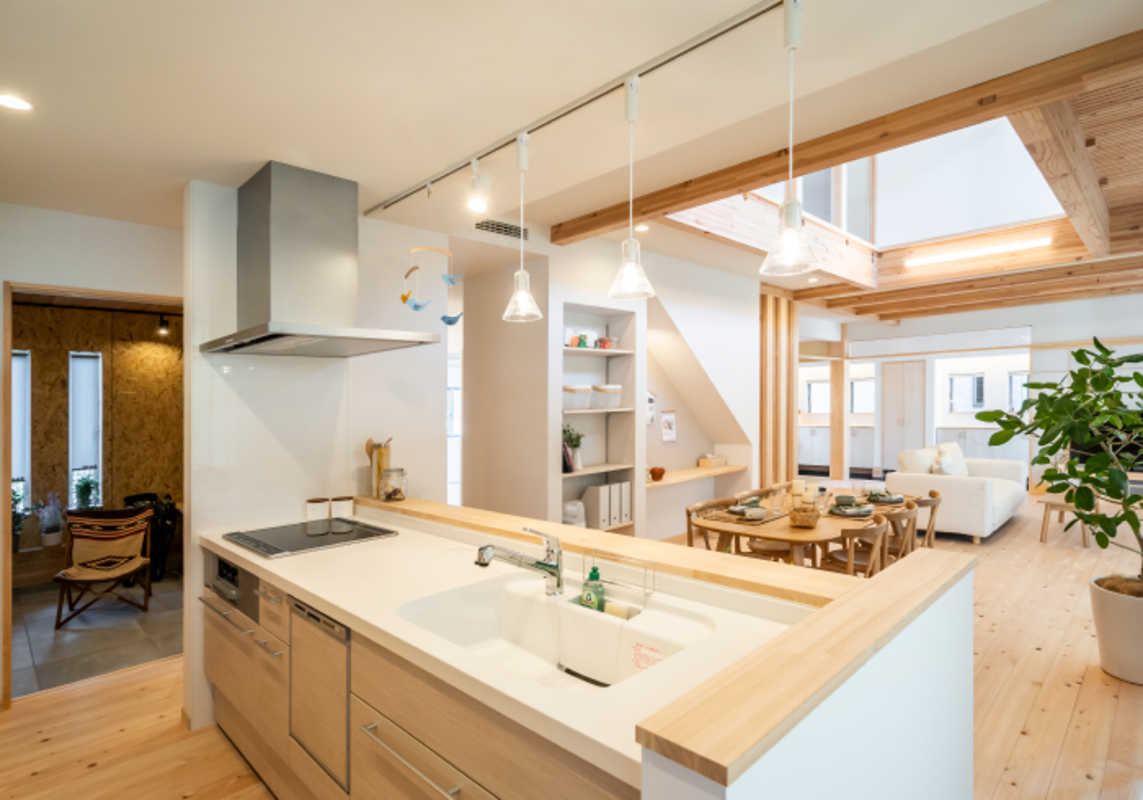 福工房のつながる間取りは、家族のコミュニケーションがとりやすい間取り。また、リビング近くに多目的カウンターを設ければ、宿題コーナーとしても使えます。