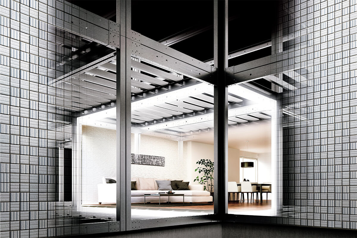 地震大国だからこそ、住まいづくりに徹底した耐震性を追求しています。強度抵抗型の「高性能外壁」と粘り型抵抗の「ユニット構造体」による2種類の耐震性能を組み合わせた業界初の耐震システムを採用。 建物の躯体自体が優れた耐震性能を発揮することで、地震の衝撃から暮らしを守る安心な住まいを実現しています。