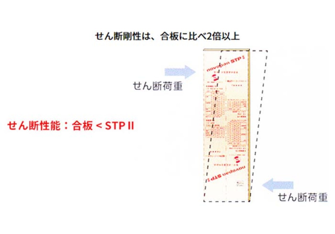 国土交通大臣認定を取得した9mm厚パーティクルボードの構造用耐力面材を採用 パーティクルボードは構造用面材に求められるせん断剛性(ずれ合う力に対する固さ)が、合板に比べ2倍以上。地震・台風に強い家を作ることができます。 また、耐水性を大幅に向上させ、木口の膨張はほとんど起こりません。 軸組工法では、2階バルコニー等の床を先行して施工することができる床勝ち仕様にも対応しているため、施工性にも優れています。