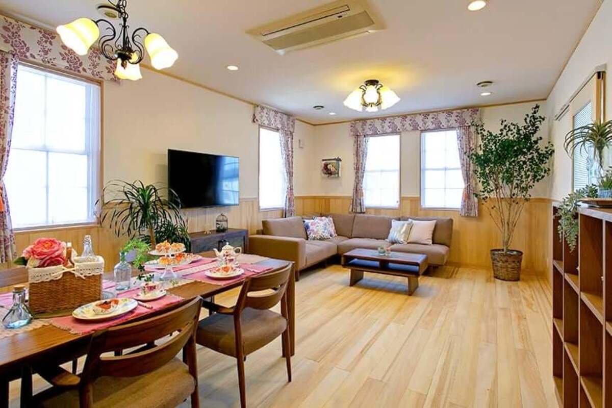 住まいの中で一番長く接する床材には、質の良い「モミの木」をふんだんに使用。独特の浮造りが、足の裏からその温もりを伝えてくれます。人間の顔や表情が一人ひとり違うように、自然のままの「モミの木」も一枚ごとに表情が違います。その味わいが、暮らしの中で日々変化しながら、家族と共に時を刻んでいけます。壁には塗る断熱材の「スピンオフ」。夏でも冬でも室内を快適に保ちます。