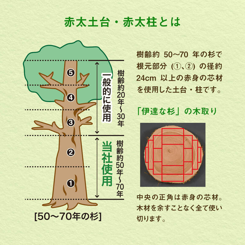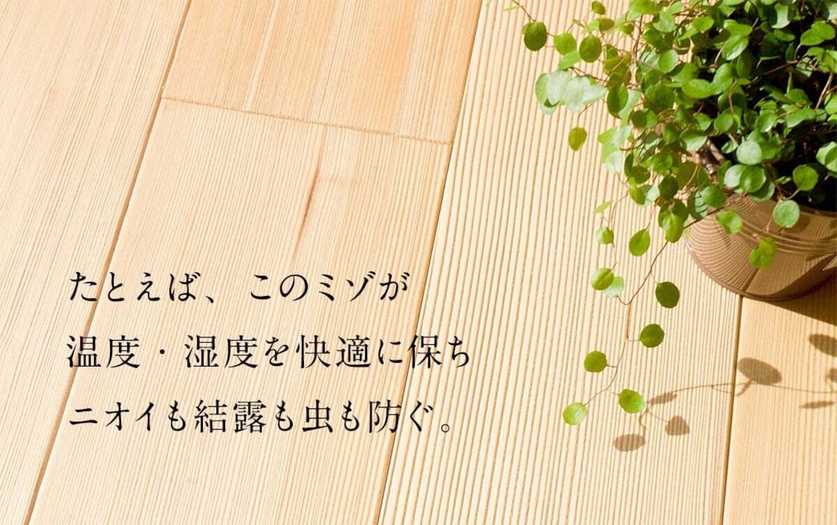 住まいの中で日常的に一番長く接触するのは床材です。モミの木の床は、木の構造、弾力性、安定した温もりで、冬ほのかに暖かく、夏はさらりとした感触を保ち、心地よい刺激を与えてくれます。柔らかすぎず硬すぎない適度な弾力性は歩行時の衝撃を適度に吸収してくれるので、足が疲れにくいというメリットや、木の構造による空気の浄化などさまざまな効果があります。私たちが、健康的で快適な住まいを考えてたどり着いたのが「モミの木」なのです。