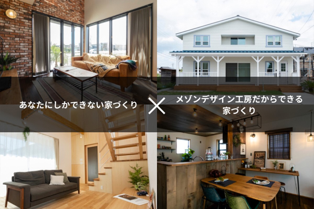 「あなたにしかできない家づくり」×「メゾンデザイン工房だからできる家づくり」で世界で唯一の家を作りましょう。 土地選び、設計士によるプランニング、自社の工事管理者による施工、家具をはじめとしたインテリアコーディネイトや完成後のアフターメンテナンスまでサポート致します。