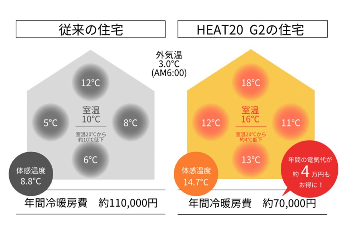 快適な高断熱のお家づくり。 メゾンデザイン工房では、夏は暑くて冬は寒い福井で安心して快適に暮らせるようデザインだけでなく、高性能な仕様が標準になっています。