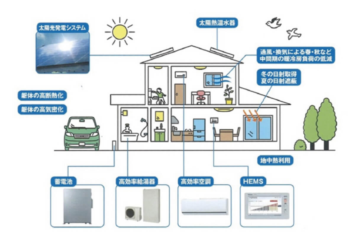 ゼロ・エネルギー住宅とは、省エネルギー基準(H25年公布)に基づく算定プログラムにおいて算出された 一次エネルギー消費量(使うエネルギー)が正味“ゼロ”以下になる住宅がゼロ・エネルギー住宅です。 オークラハウスは住まいの断熱・気密・換気を向上させることで省エネ化を図り、省エネ性の高い設備により、さらに使うエネルギー量を減らします。