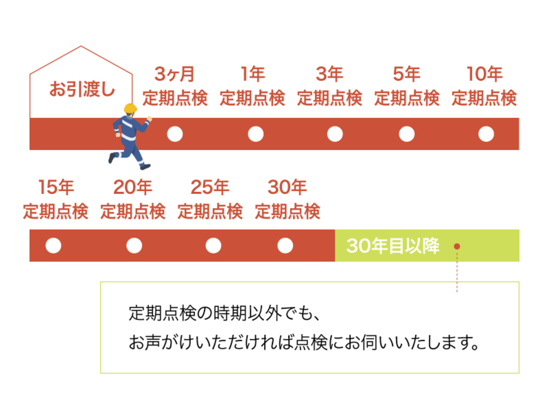 三洋ハウスは、お引渡し後のお付き合いを何よりも大切なものと考えます。アフターサービス専門のスタッフが、きめ細かくチェックをして問題の早期発見・解決を行います。