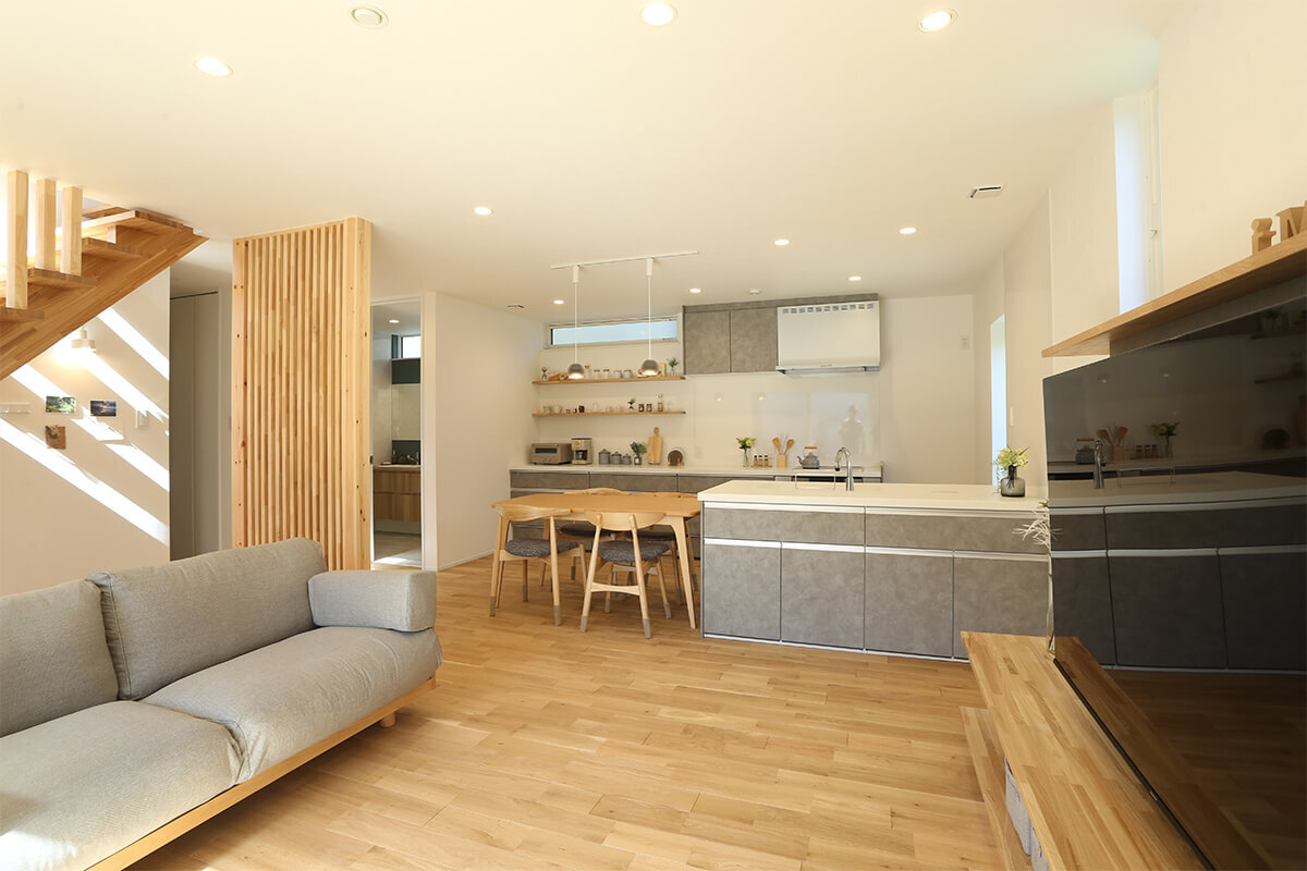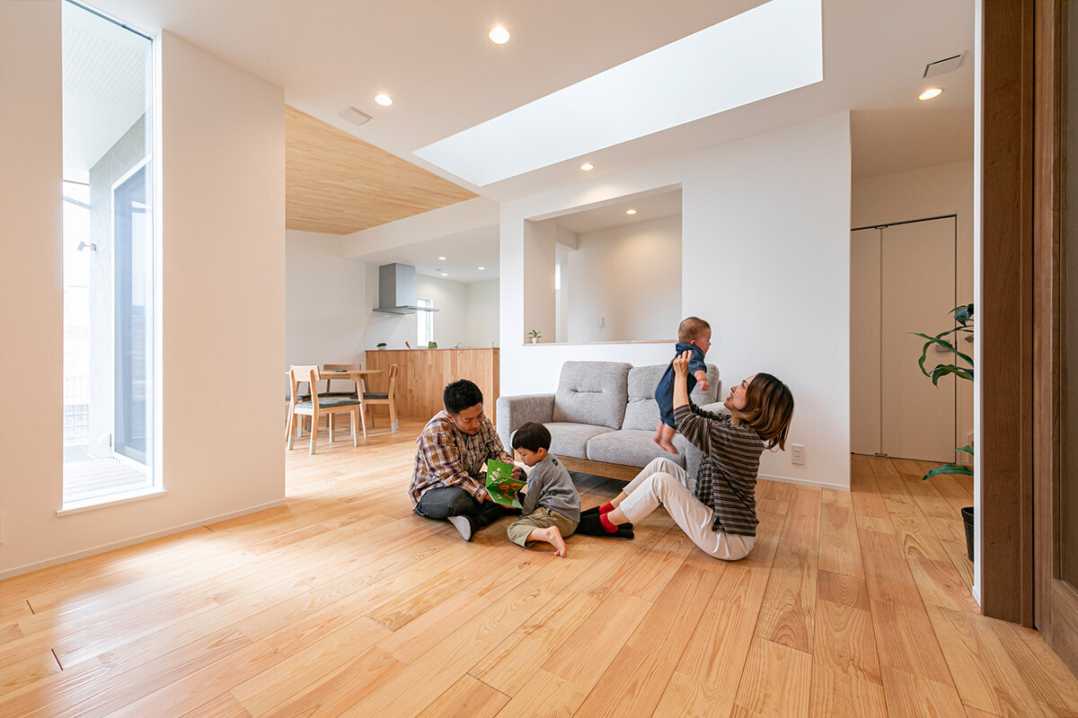 ①高い耐震性:全棟構造計算(許容応力度計算)を実施し、耐震等級3の家創りをしています。制震ダンパーも全棟搭載。 ②きれいな空気環境:第一種熱交換型換気システムを採用しています。花粉、PM2.5を除去するフィルターも搭載。室内の空気環境を常に考慮しています。人体に影響を与える防腐、防蟻薬品は使用しません。 ③断熱・気密性:家全体で温度差を無くし、ヒートショック0を目指します。UA値0.46以下にし、いつまでも健康で過ごせます。