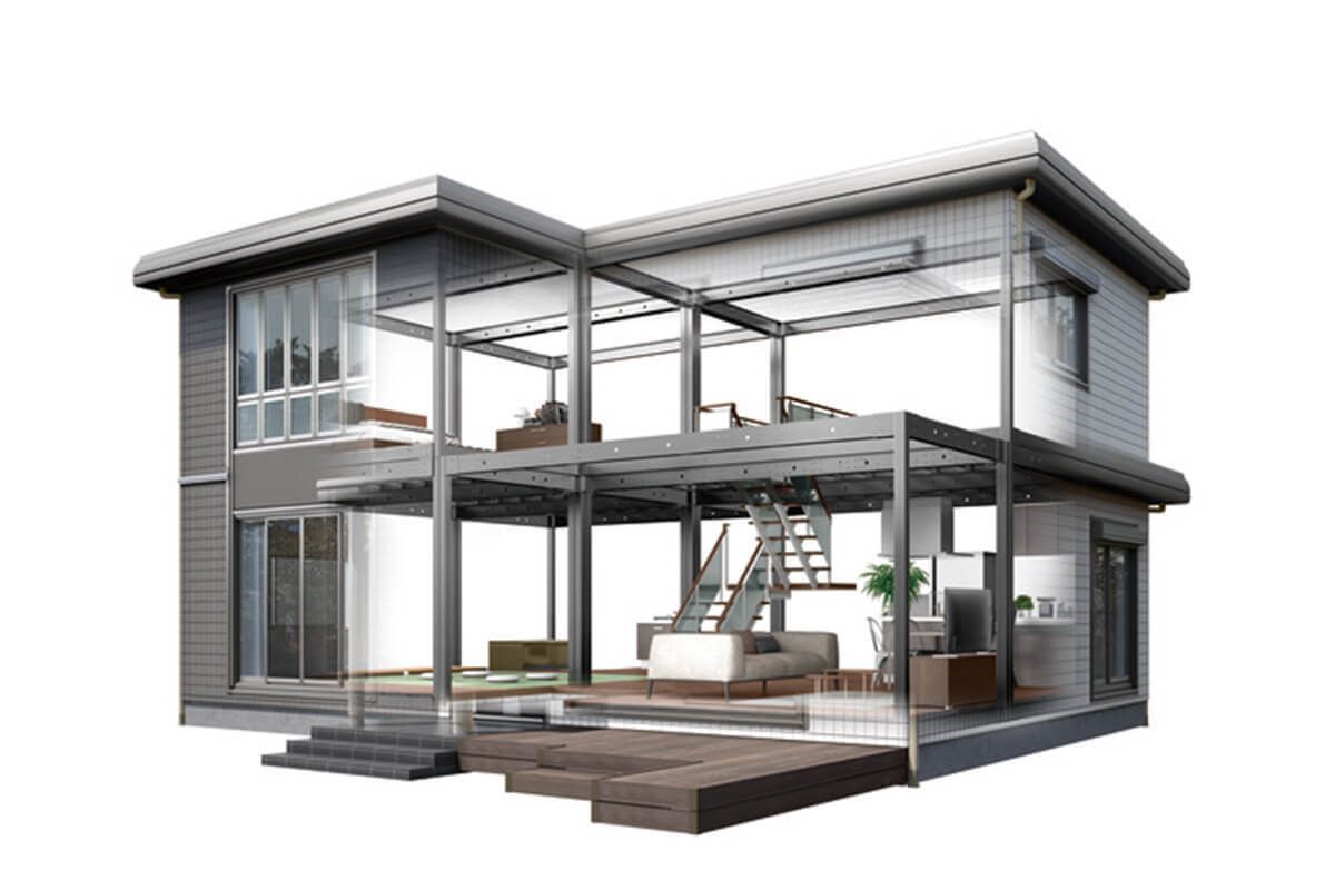 セキスイハイムでは、住宅をユニット単位に分割して、品質管理の徹底された工法で精密につくり込む、独自の「ユニット工法」を採用しています。 建物のベースとなるのは、柱と梁を溶接し、一体化したユニットを積み重ねた「ボックスラーメン構造」。高層ビルなどに用いられる建築技術を応用し、圧倒的な強さとプランの自由度の高さを実現します。