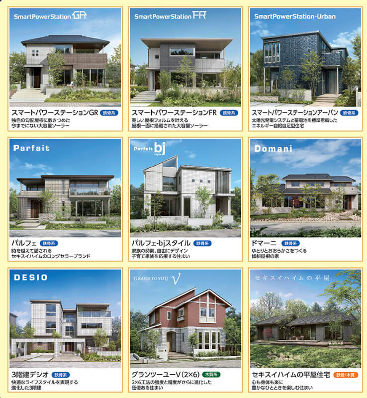 住まいとは、家族の健康や安全、幸せな暮らしを守るもの。そして、環境に配慮したものでなければならない。永く愛され、住み継がれていくために、今の時代に適応するだけではなく、将来においても満足できる住まいを作る。セキスイハイムの理念には、そんな想いが込められています。 鉄骨・木質、2階建・3階建・平屋、エネルギー自給自足型住宅など、様々な商品タイプがございます。
