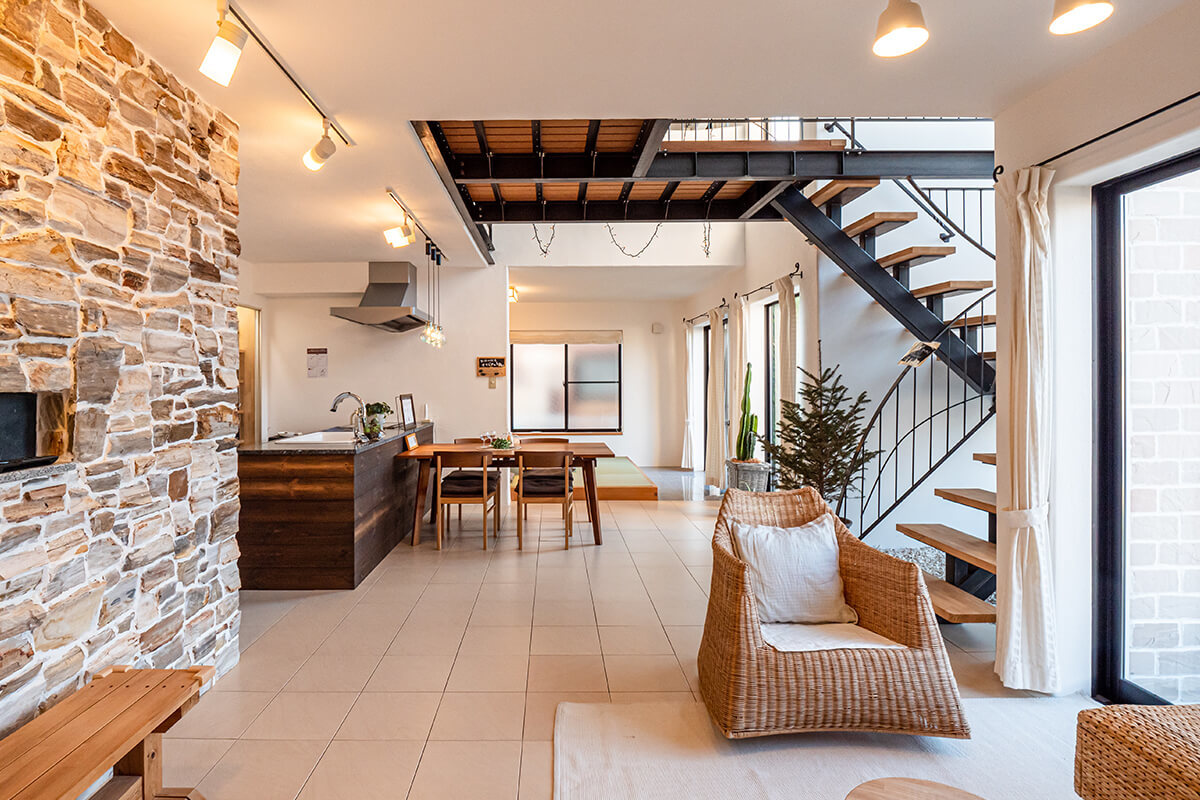 吹き抜けリビング大屋根の家