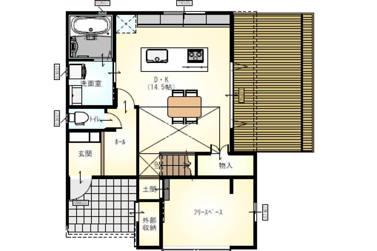 DKとゆるやかにつなぐウッドデッキはもう一つの憩いの場。お友達を呼んでバーベキューをしたりプールを出して子供たちを遊ばせたり、想像以上の楽しさを演出します。