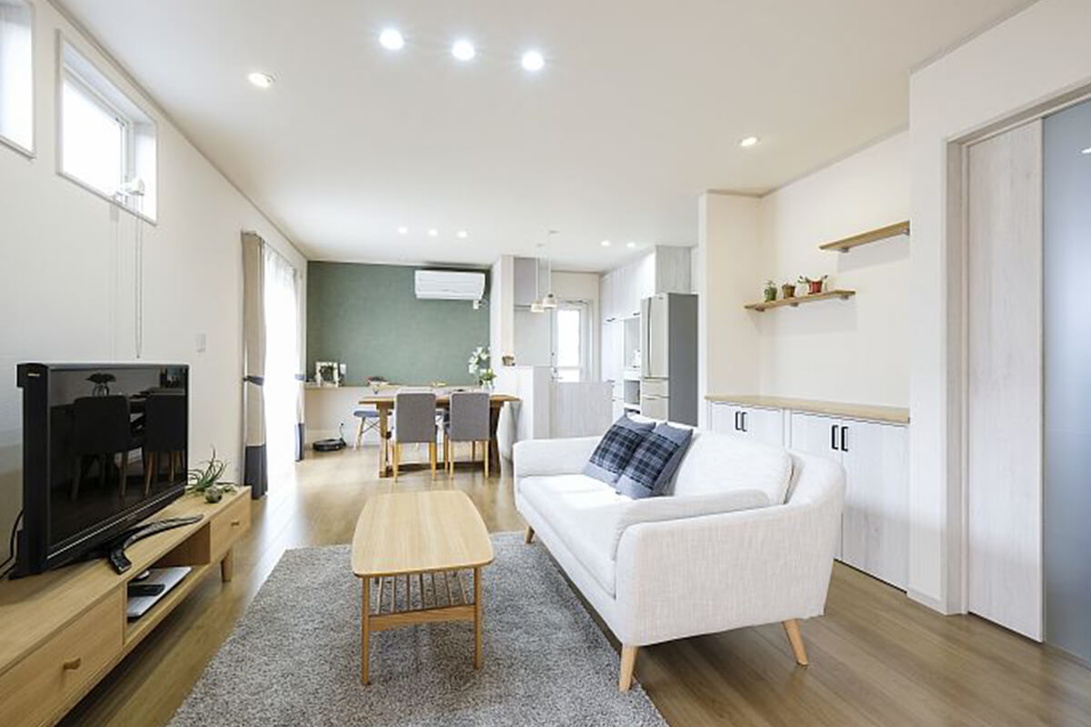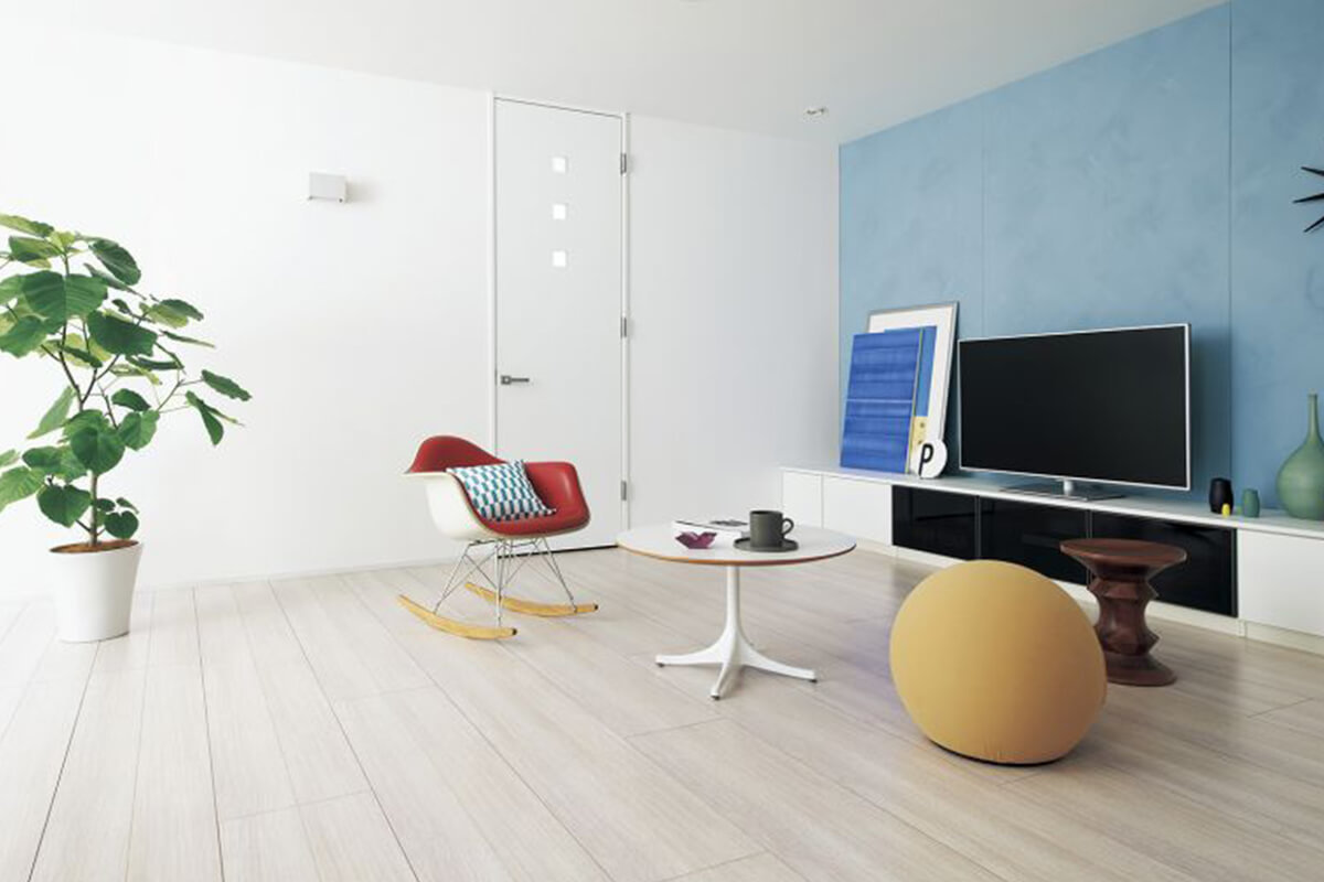 家族の思い出を飾って、 壁にさりげないインテリア。 リビングの壁におしゃれな飾り棚を。 小さな観葉植物や家族の写真を置いて、 暮らしに、ワンポイントの彩りを添えられます。 アクセントクロス 壁の一面だけ好きな色を取り入れて。 お部屋の一面を他の壁紙と変えるだけで、 ぐっとお洒落に。好きな色や柄を使って、 わが家らしくアレンジしてみましょう。