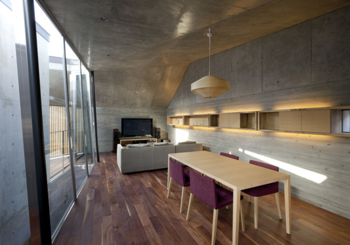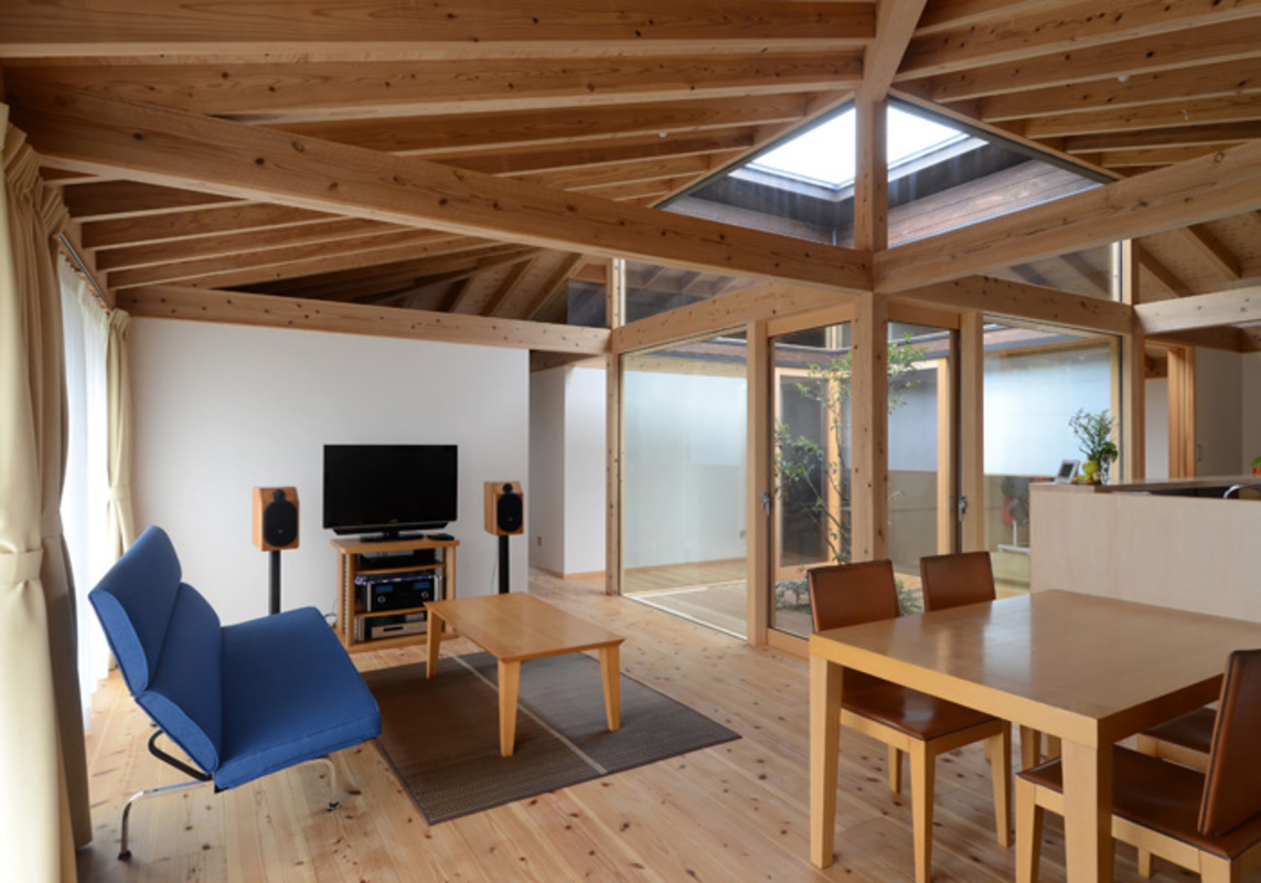 敷地と施主の個性を生かす:斜線制限がそのままインテリアに現れたLDK