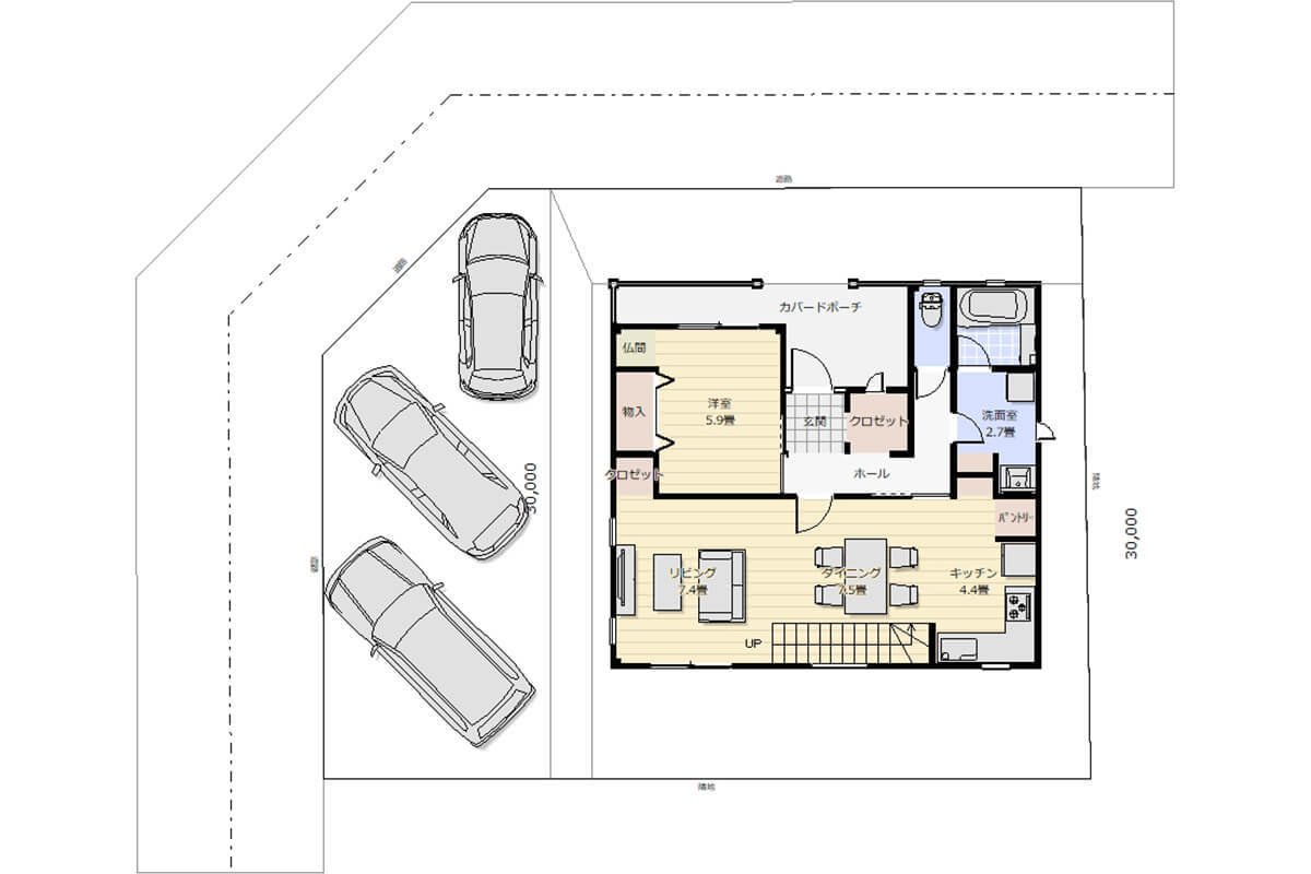 カリフォルニアスタイルの家を建てたいと弊社にお越し下さったN様。ご夫婦ともにカッコいい家を作りたいという思いがあり、ご予算とのバランスを考えながらブラックやネイビーなどポイントとなるカラーを厳選しコーディネートさせていただきました。外観もブルーのサイディングやアメリカンフェンスなど、海の見えるシチュエーションに映える雰囲気に仕上がりました。
